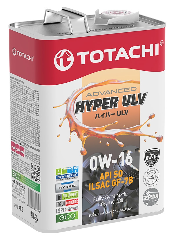 Hyper ULV 0W-16 满足或超过需要 API SP 和 ILSAC GF-6B 油的汽油车辆的 OEM 保修要求。 TOTACHI® 保证完全符合产品标签上注明的书面规格。